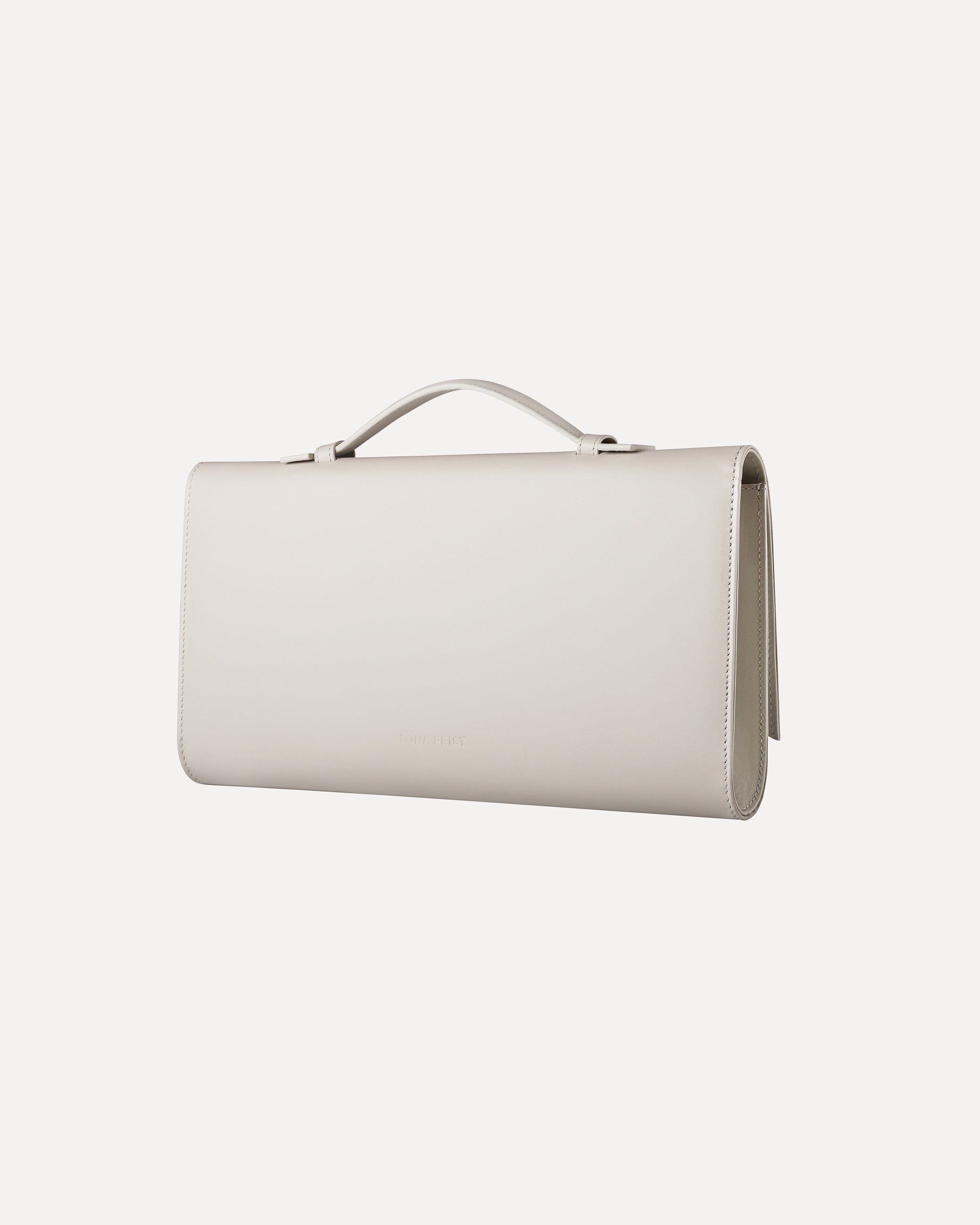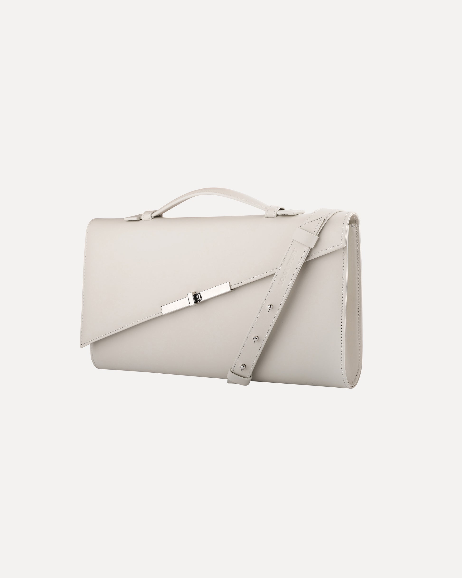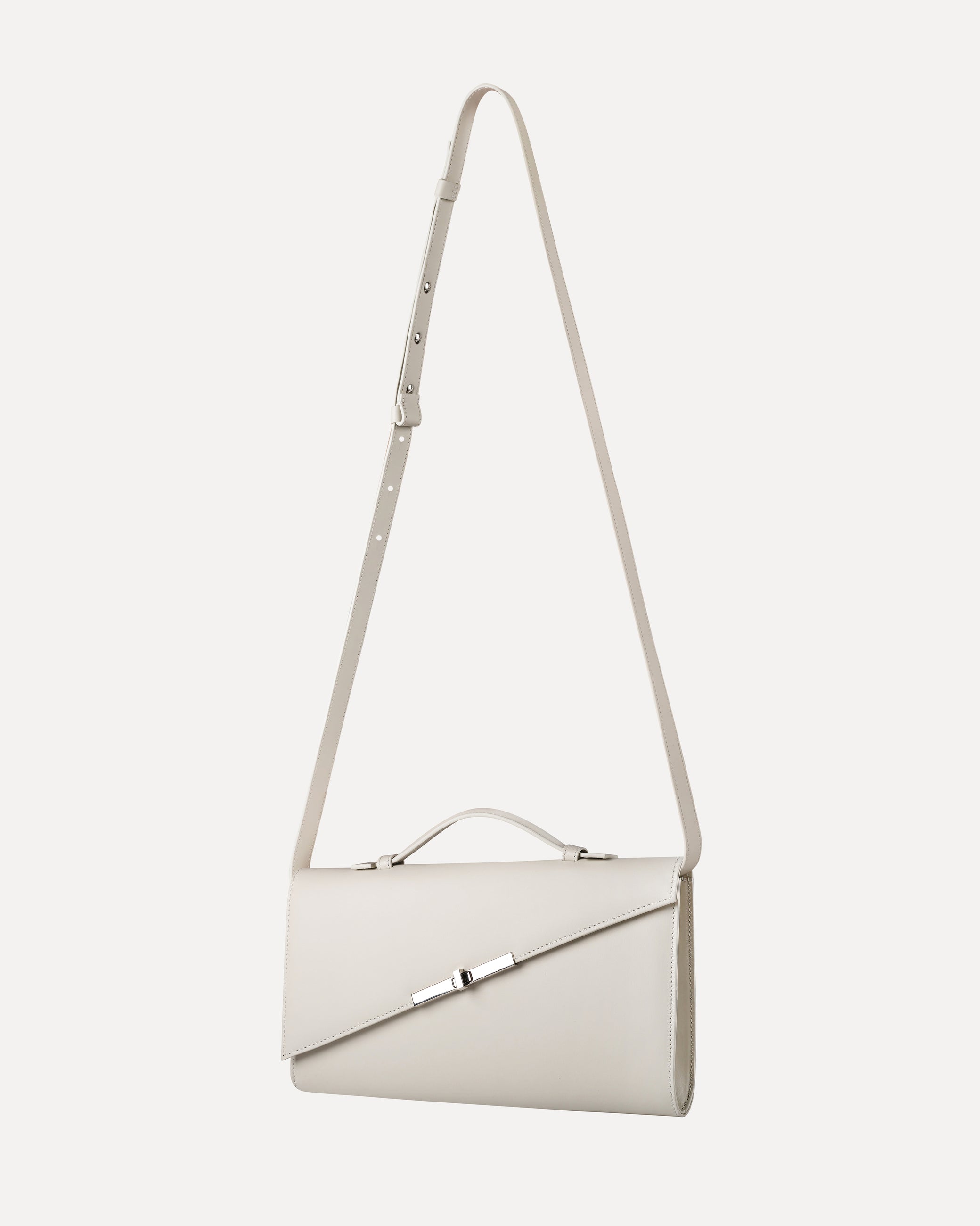 Clutch in genuine Italian leather, with leather lining and silver hardware. Includes a detachable leather strap for shoulder or crossbody wear.