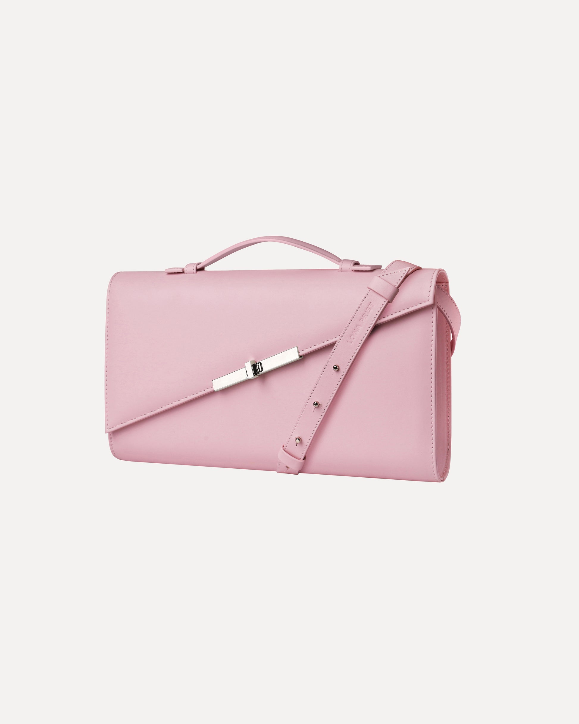 Clutch in genuine Italian leather, with leather lining and silver hardware. Includes a detachable leather strap for shoulder or crossbody wear.