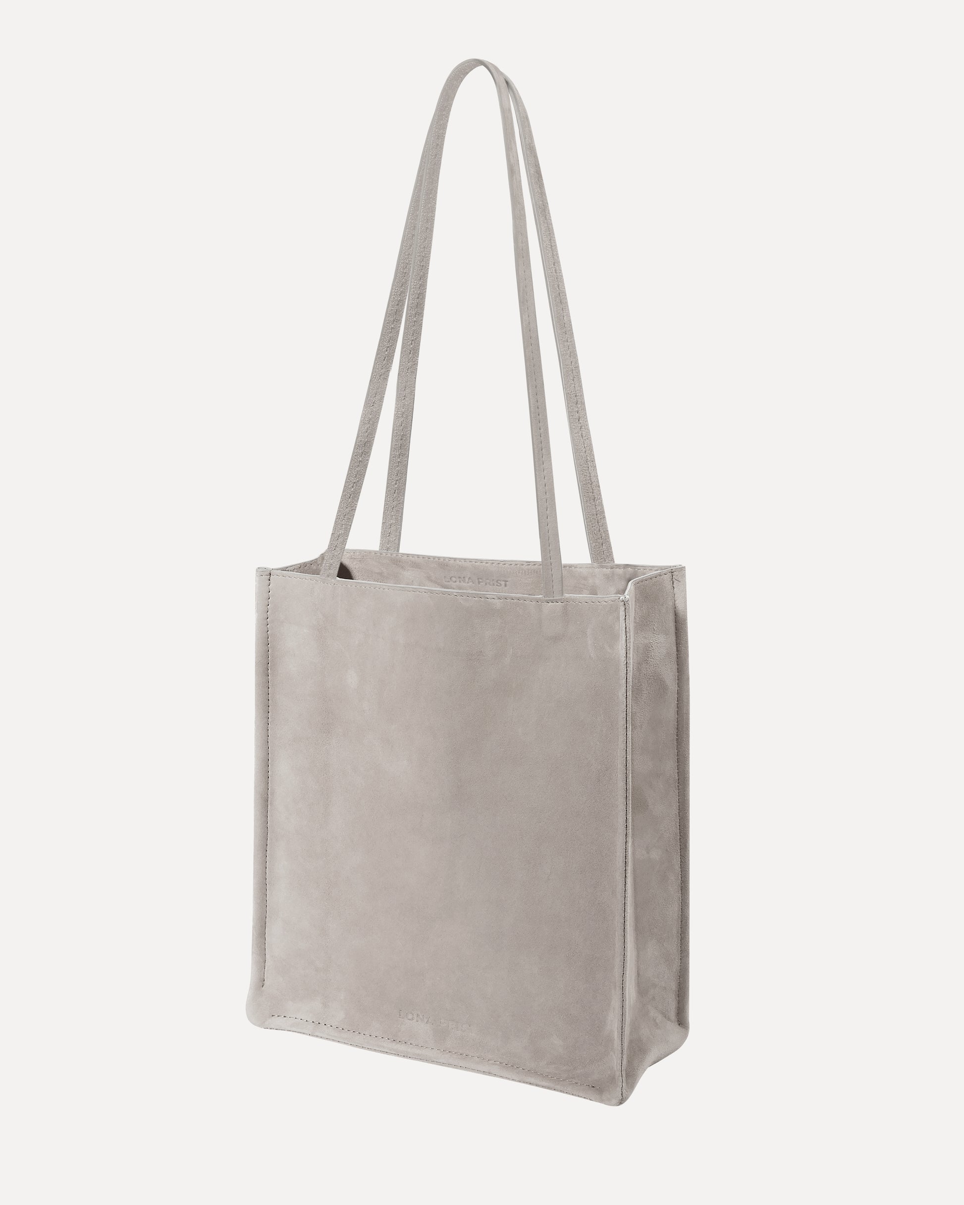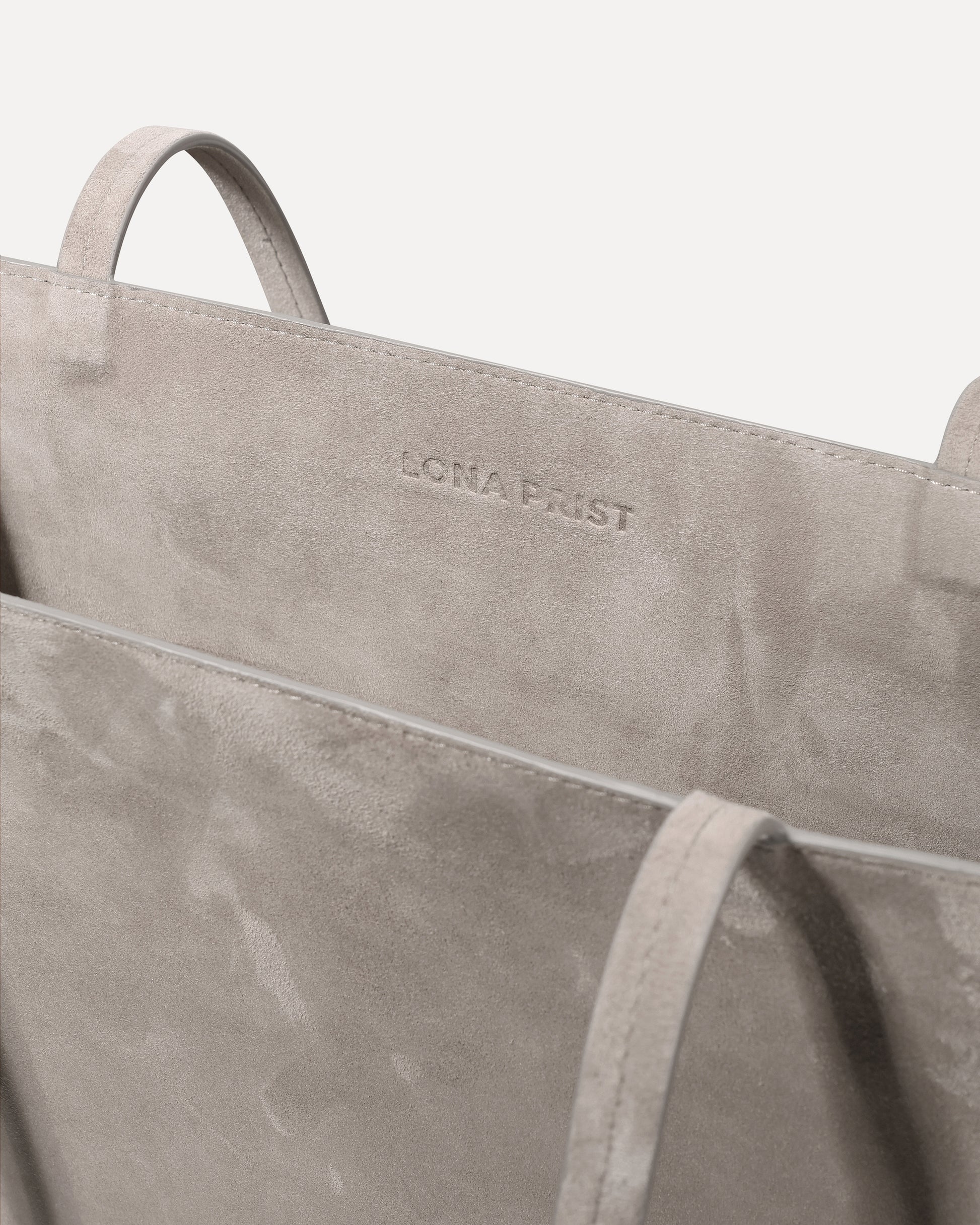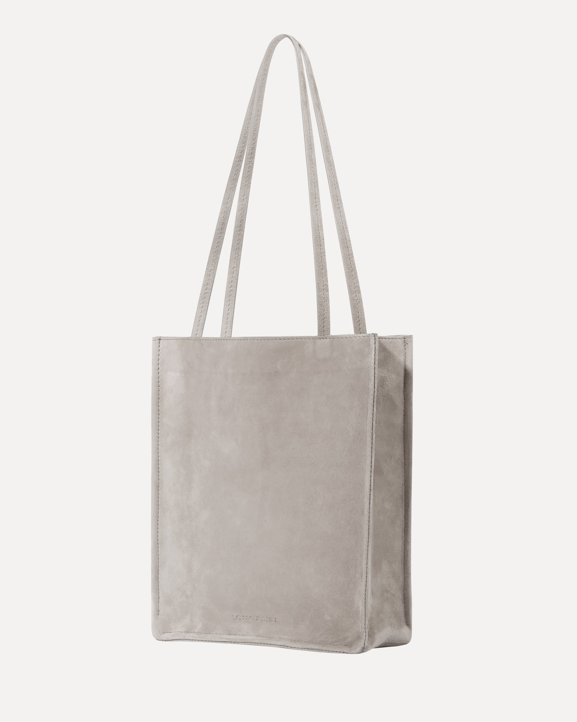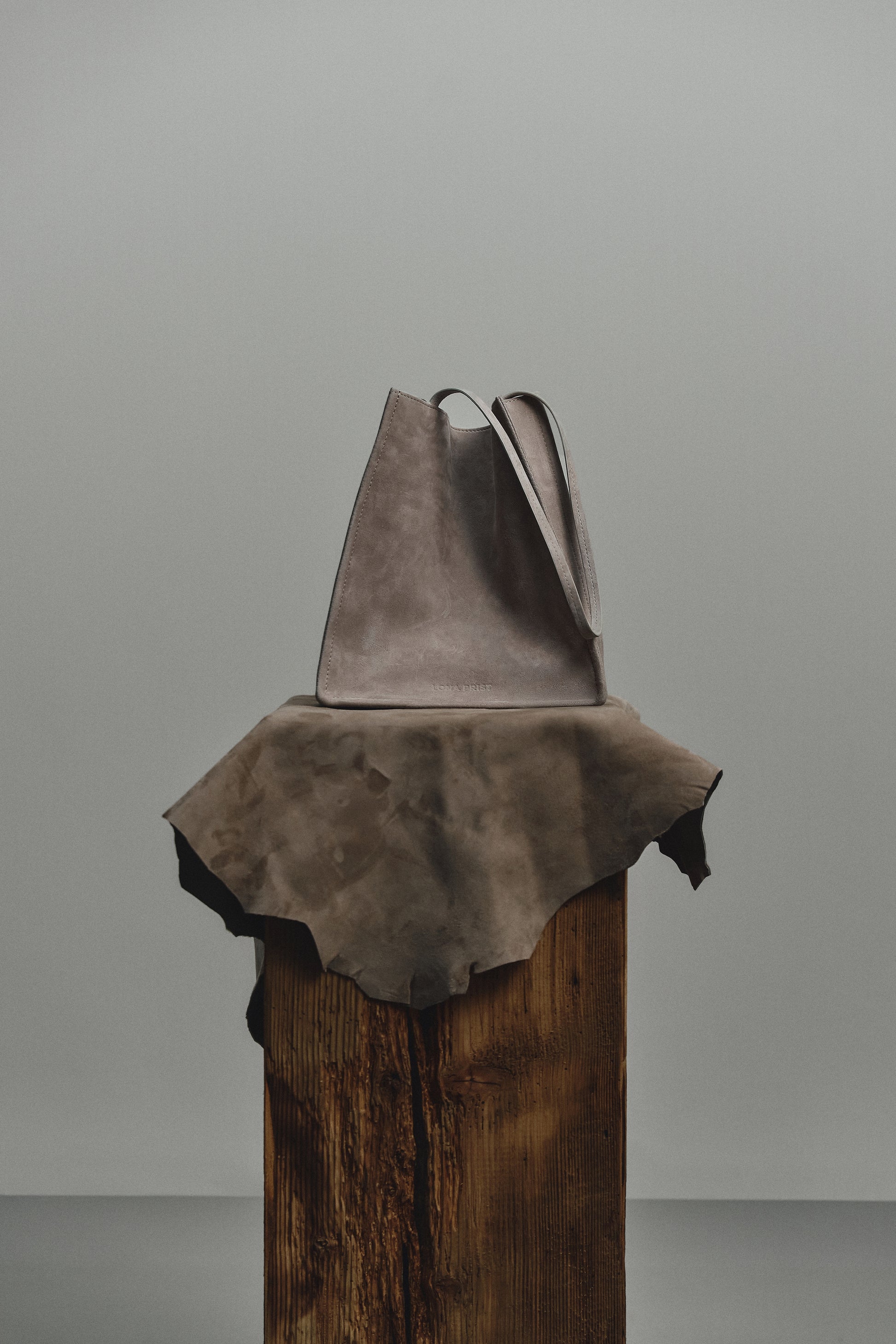 Its silhouette combines the sculptural clarity of LONA PRIST with the natural softness of suede.
