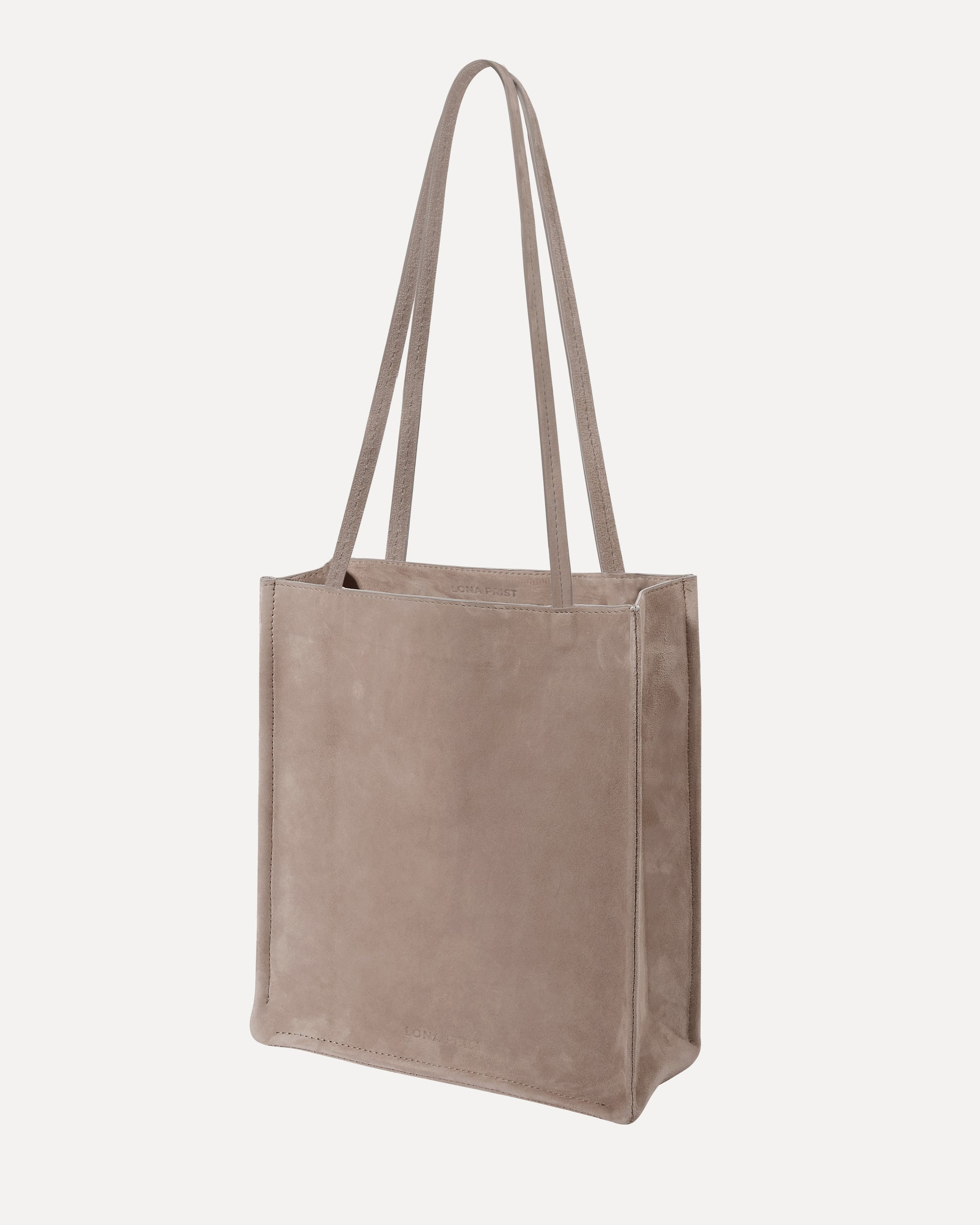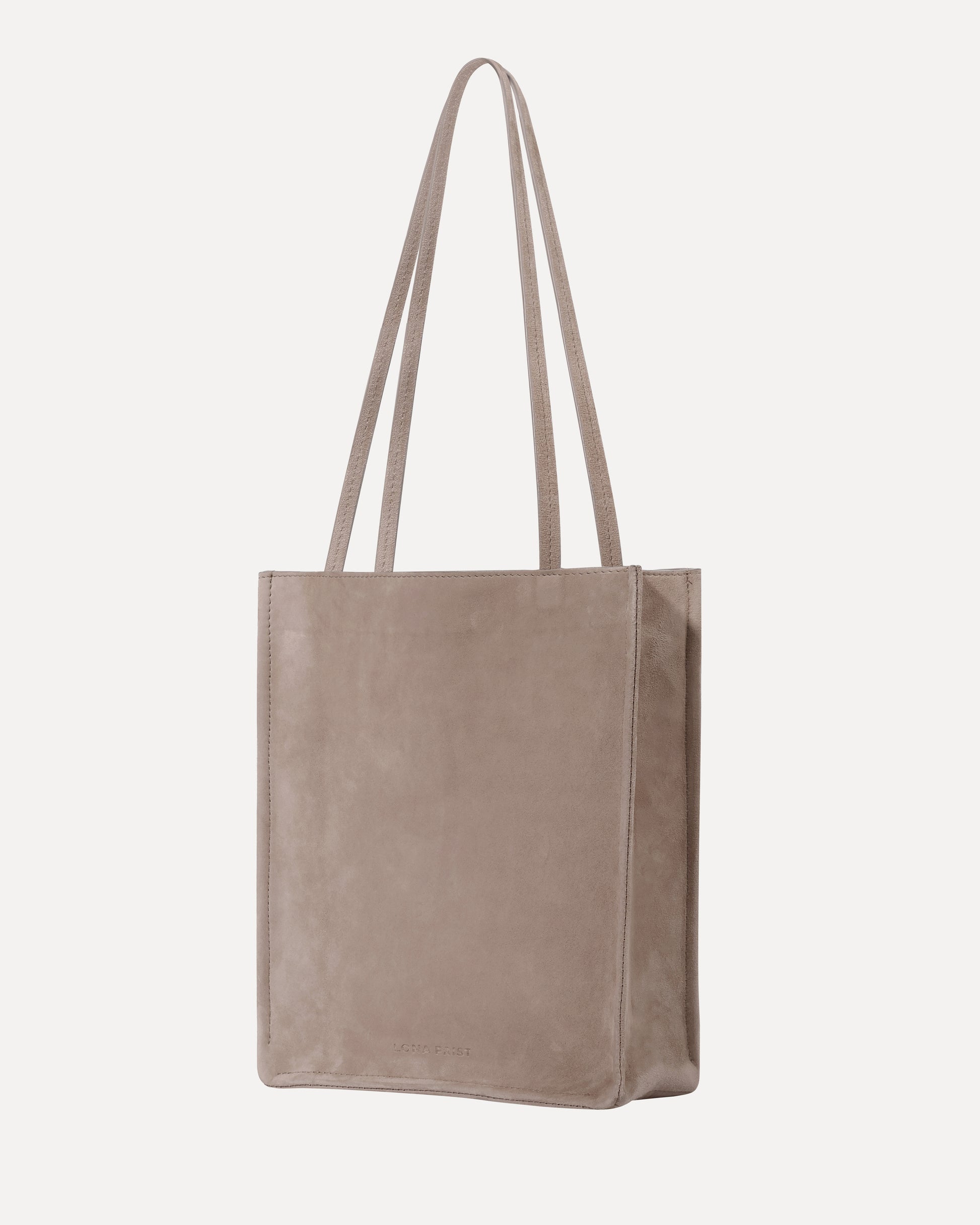 Its silhouette combines the sculptural clarity of LONA PRIST with the natural softness of suede.