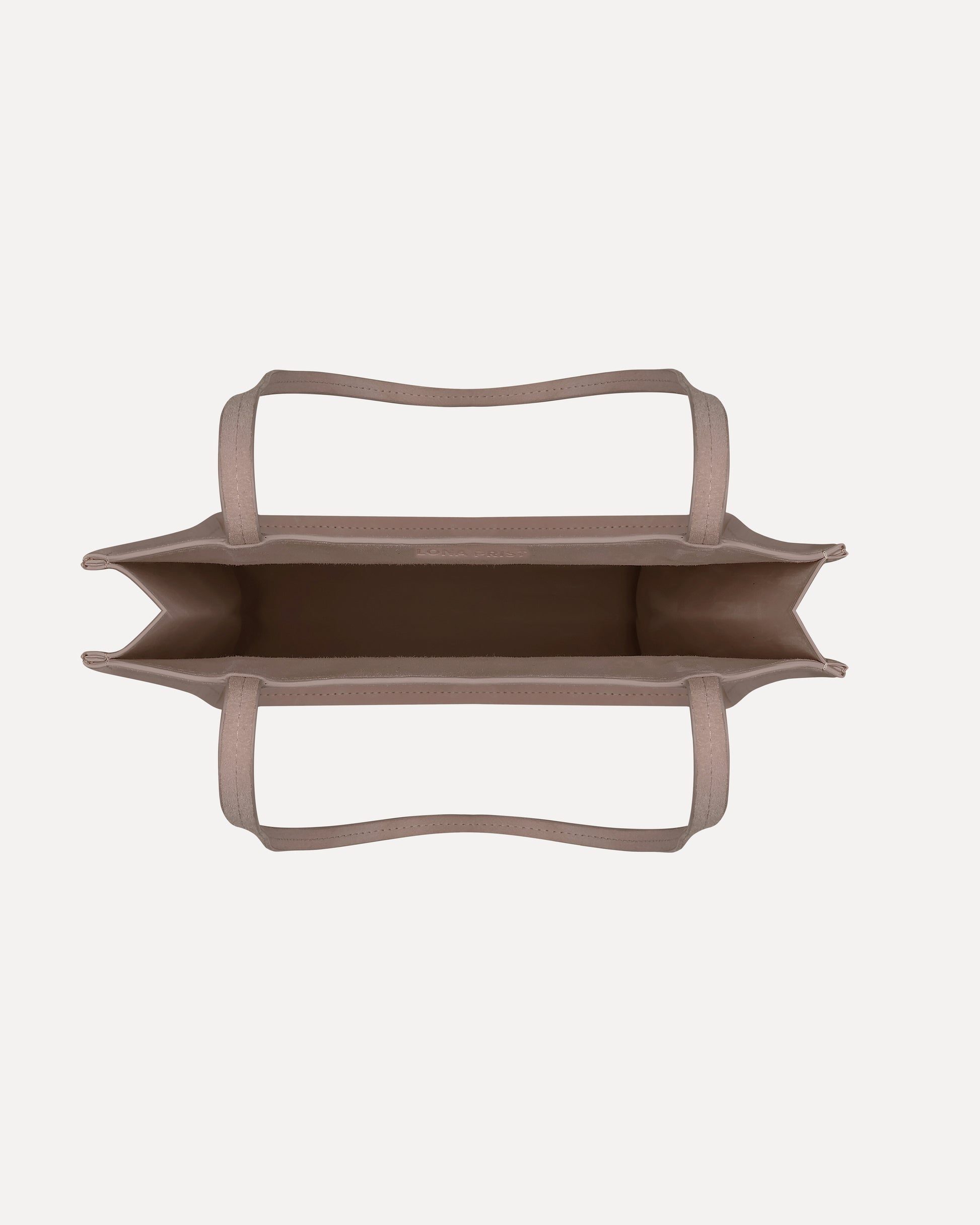 Compact and balanced, the Small Tote Bag reinterprets the brand’s signature geometry in a lighter form.