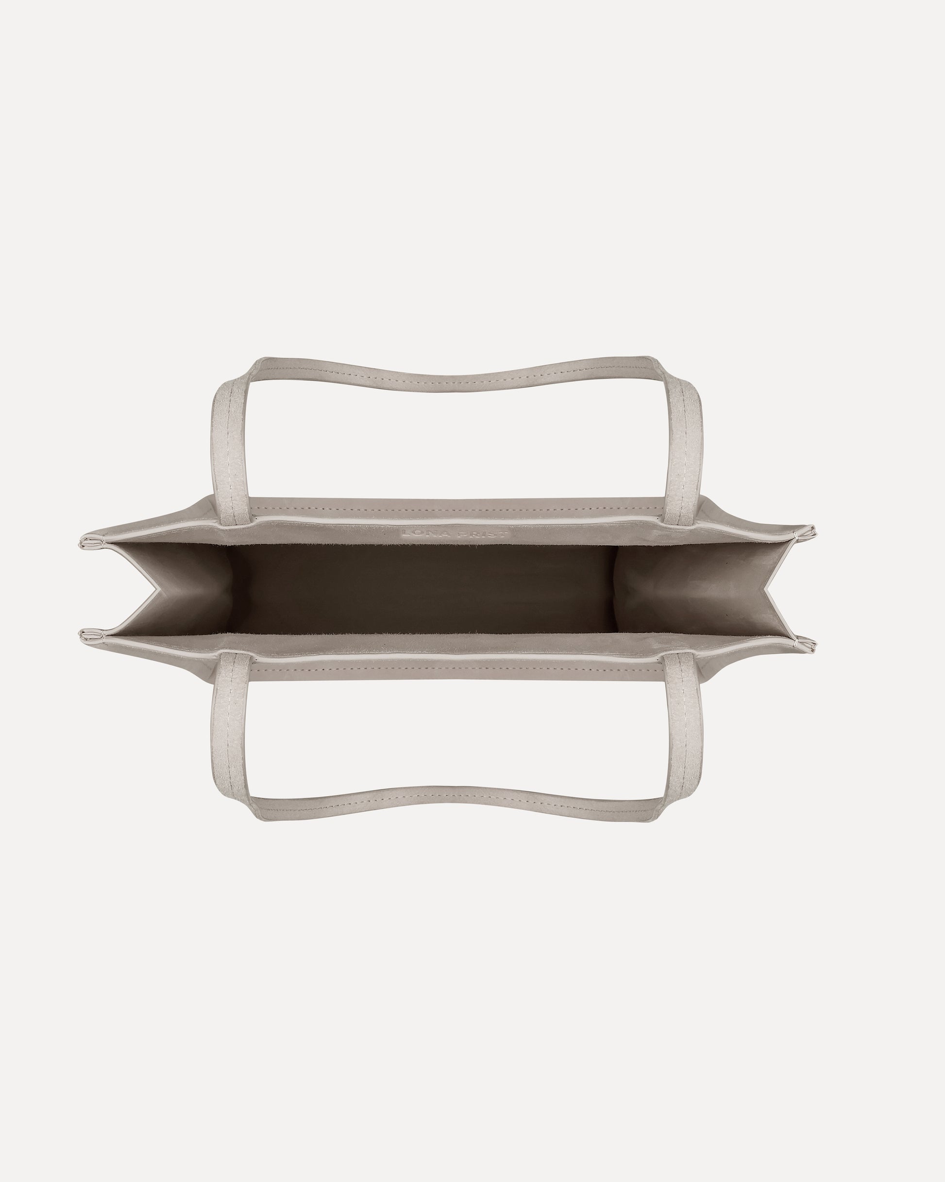 Compact and balanced, the Small Tote Bag reinterprets the brand’s signature geometry in a lighter form.