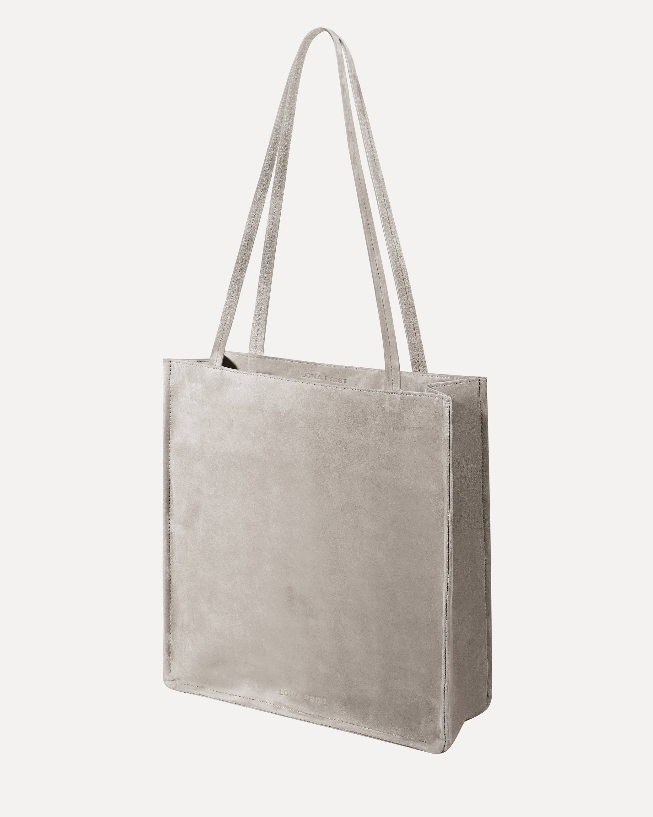 Its silhouette combines the sculptural clarity of LONA PRIST with the natural softness of suede.