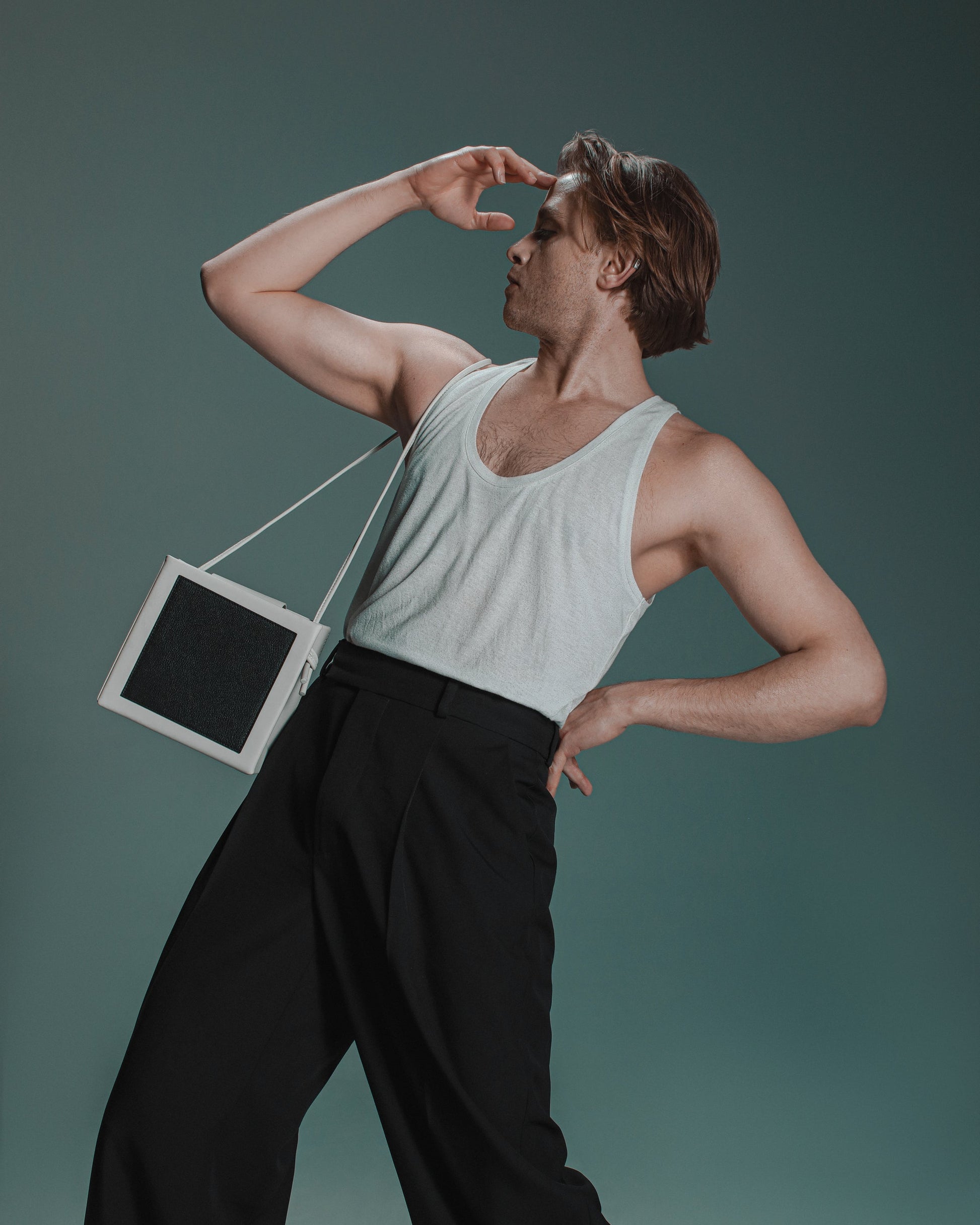 Ремені повторюють чисту геометрію образу, не порушуючи гармонії, а навпаки — підсилюючи її. Ця модель — не інтерпретація, а твердження. Про присутність. Про тишу, наповнену змістом.